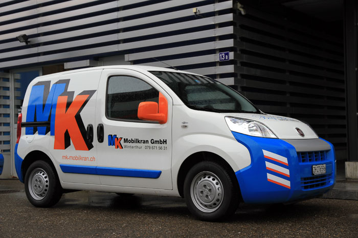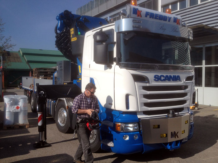 Unser LKW- Kran "Big Blue" im Einsatz beim Hauptquartier in Winterthur |