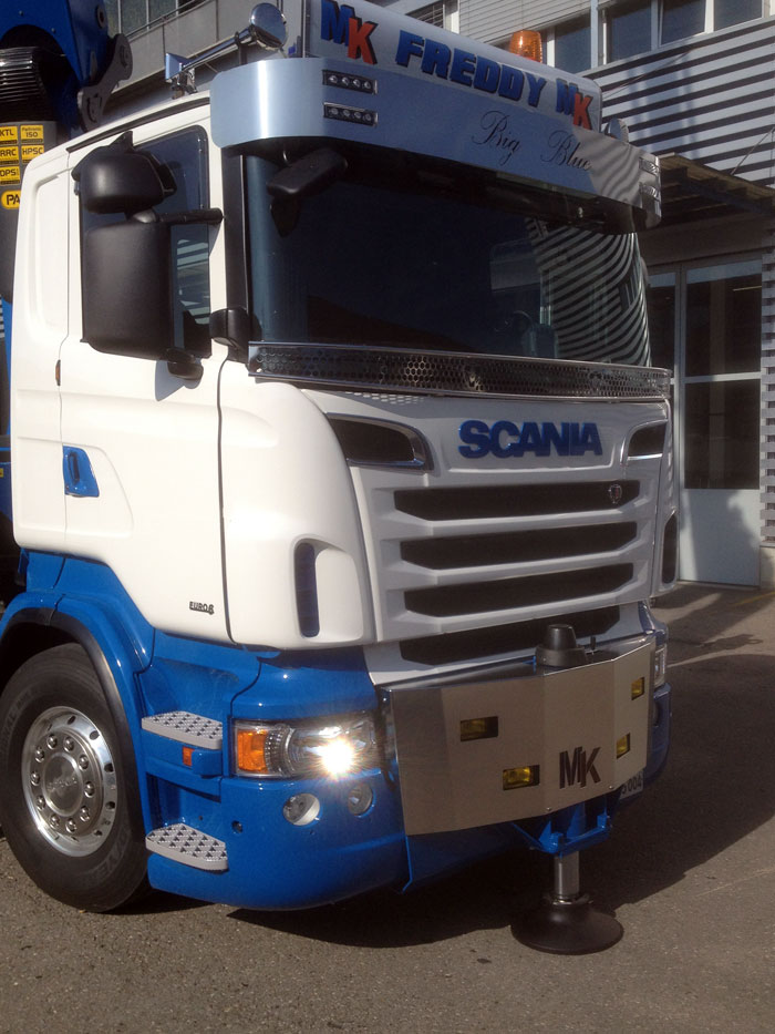 "Big Blue" kann komplett hinter dem LKW Fahrerhaus zusammengelegt werden. Die ganze Ladebrücke steht somit zu Ihrer Verfügung |